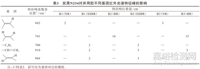5、添加炭黑N234對并用膠不同基團(tuán)特征峰紅移的影響