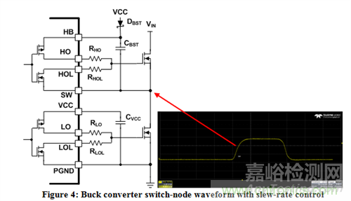 圖4:降壓轉(zhuǎn)換器開(kāi)關(guān)節(jié)點(diǎn)波形和轉(zhuǎn)換速率控制