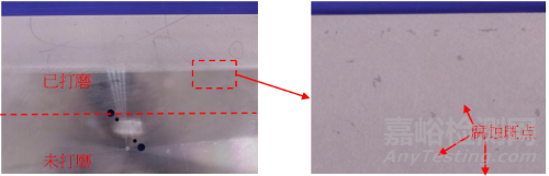 OK區(qū)域可見較多打磨劃痕,但無腐蝕凹坑或孔洞,亦無明顯附著物;