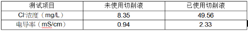 未使用的切削液Cl-離子濃度為8.35mg/L,使用后Cl-離子濃度增大到49.56mg/L;
