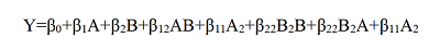 其中,A和B為自變量,Y是每個因素不同組合方式得到的結(jié)果(因變量),β0是截距,β1到β22是回歸系數(shù),AB、A2和B2分別代表因素間、因素內(nèi)的相互作用。