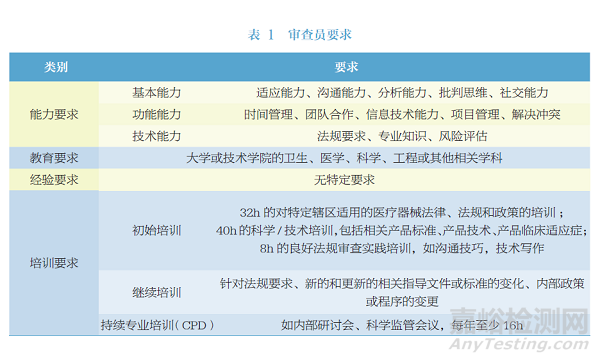 其中FDA對于審評人員的要求采用的是國際醫(yī)療器械監(jiān)管者論壇(International Medical Device Regulators Forum,IMDRF)2017年發(fā)布的《監(jiān)管審查員的能力、培訓(xùn)和行為要求》(Competence,Training,and Conduct Requirements for Regulatory Reviewers)[6](文件編號170316),具體要求詳見表1。