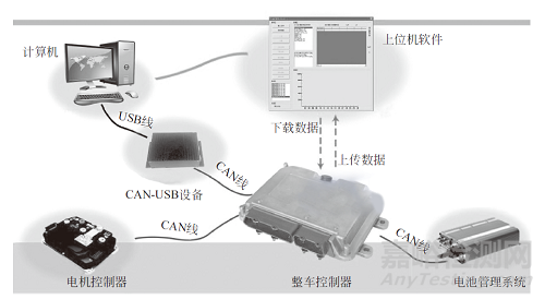 直接向整車控制器發(fā)送信號的傳感器包括加速踏板傳感器、制動踏板傳感器和擋位開關(guān),其中加速踏板傳感器和制動踏板傳感器輸出模擬信號,擋位開關(guān)輸出信號是開關(guān)量信號。整車控制器通過向電機(jī)控制器、電池管理系統(tǒng)發(fā)送指令間接控制驅(qū)動電機(jī)運轉(zhuǎn)和動力電池充放電,通過控制主繼電器來實現(xiàn)車載模塊的通斷電。