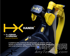 Human Xtensions的手持式解決方案HandX™堅(jiān)固小巧,重量輕, 是一種機(jī)電控制腹腔鏡裝置,將人和機(jī)器結(jié)合在一起,可用于MIS的高級(jí)8自由度(DOF)。