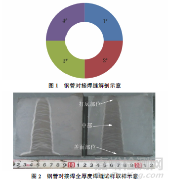 理,然后取全厚度焊縫試樣(見圖2)、金相檢驗(yàn)試樣(三氯化鐵+鹽酸溶液擦拭腐蝕或體積分?jǐn)?shù)為10%硫酸溶液電解腐蝕)、透射電鏡(TEM)試樣(用聚焦離子束取樣)。