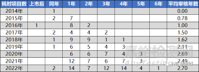 1、時長:綠通加速后,平均1.65年完成上市,2022年放緩至2.7年