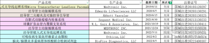 值得一提的是,來自美國的創(chuàng)新醫(yī)療器械也有9款已經(jīng)獲得上市,其中Medtronic(美敦力)一家就占據(jù)了3款,而有6款產(chǎn)品是以注冊進口方式上市,分別如下圖:
