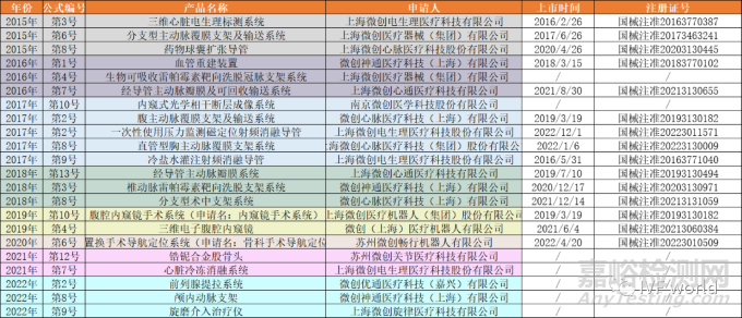 其中,微創(chuàng)集團有22款產(chǎn)品進入了創(chuàng)新醫(yī)療器械的綠色通道,其中有15款產(chǎn)品已經(jīng)完成上市,它們分別是:
