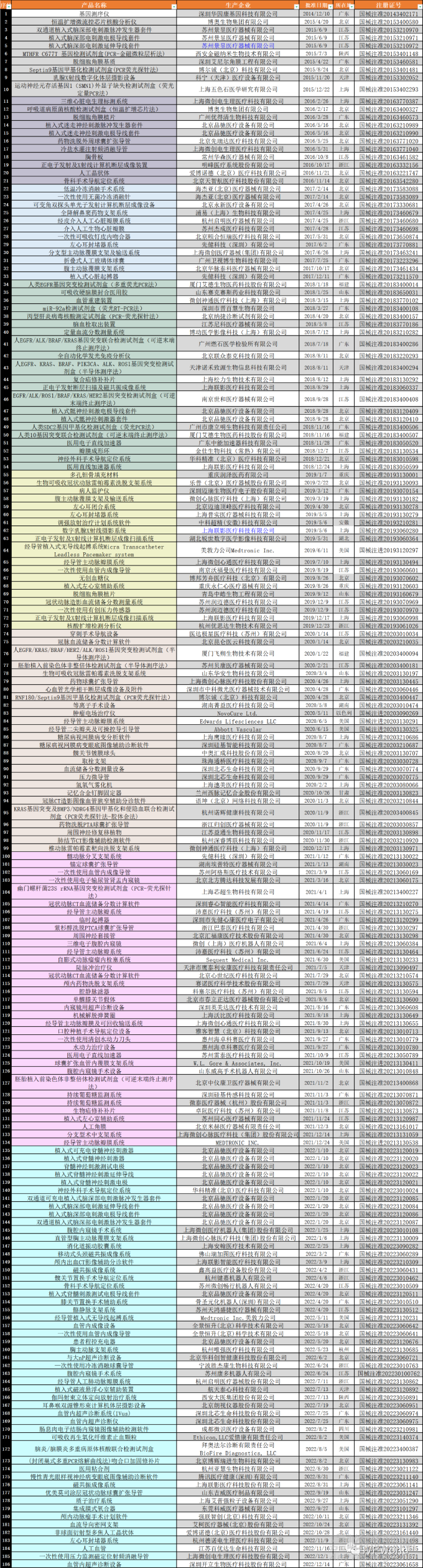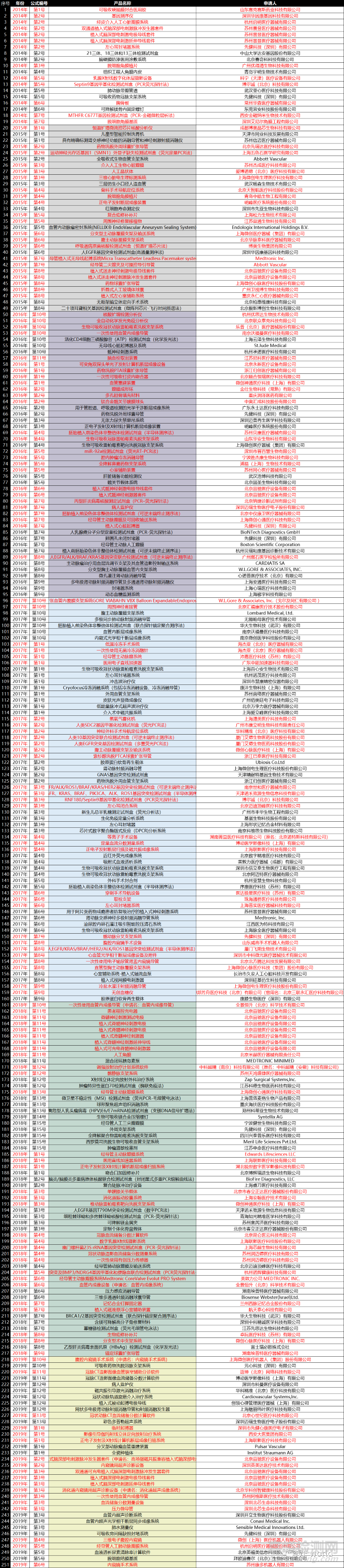 附錄2:188款已上市創(chuàng)新醫(yī)療器械