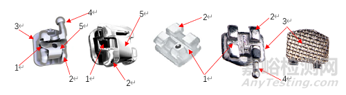 正畸托槽,通??捎烧蹨?又稱弓絲槽)、結(jié)扎翼、粘接用底板、牽引鉤(僅限帶鉤的正畸托槽)、活動(dòng)鎖片/鎖蓋/鎖夾(僅限自鎖式正畸托槽結(jié)構(gòu))和粘接劑(僅限于粘接劑預(yù)置托槽)組成。