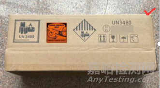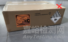 說明:缺少鋰電池標(biāo)記;普通紙板箱不是UN箱。