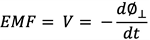 法拉第定律可以通過(guò)斯托克斯(Stokes)定理簡(jiǎn)化為以下形式,其中Ø是垂直于感應(yīng)傳感器繞組的磁通分量,磁通則寬泛地定義為磁場(chǎng)和橫截面積的乘積:
