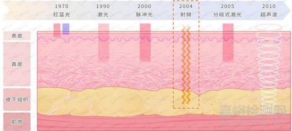 射頻作用于深層皮膚組織,通過熱能引發(fā)膠原重塑。射頻(RF)作用于真皮甚至皮下組織,通過電磁波可選擇性向真皮和皮下組織傳遞熱能,治療即刻出現(xiàn)短期的原發(fā)性的膠原收縮,隨后可逆性熱損傷啟動皮膚的修復機制,上調(diào)I型膠原mRNA的表達,引起新的膠原纖維合成,并導致膠原重塑,這一過程發(fā)生于 RF 治療后 2~6 個月,持續(xù)時間較長。