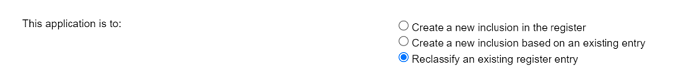 3. 選擇"Reclassify an existing register entry"選項(xiàng)