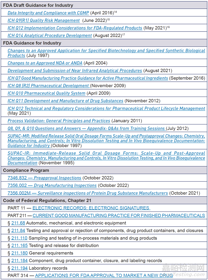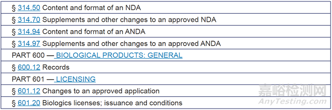 21 CFR 11, 211.68, 211.84, 211.180, 211.184, 314.50, 314.94, 601.20