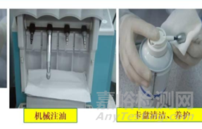 使用壓力氣槍將我表面和體內(nèi)殘余的水吹干凈。再經(jīng)工作人員使用牙科手機(jī)專用自動注油養(yǎng)護(hù)機(jī),對我進(jìn)行注油潤滑:
