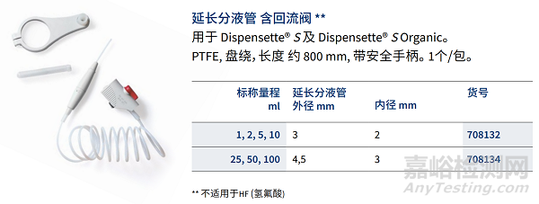 ▲Dispensette® S延長(zhǎng)分液管貨號(hào)