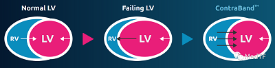 ContraBand 通過保留的右心室(RV)能夠幫助衰竭的左心室,改善左心室射血分?jǐn)?shù),減少了二尖瓣反流并恢復(fù)了有利的心室?guī)缀涡螤??!?/span>