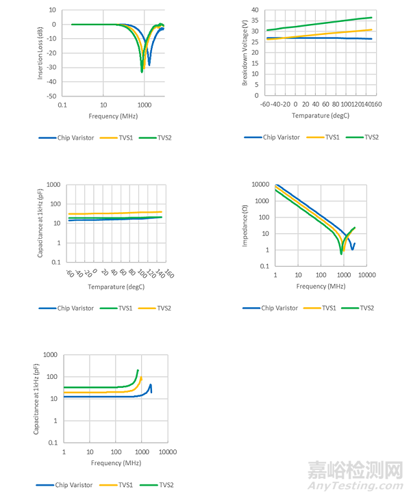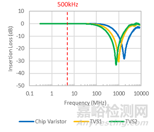 圖9 貼片壓敏電阻和TVS二極管的插入損耗
