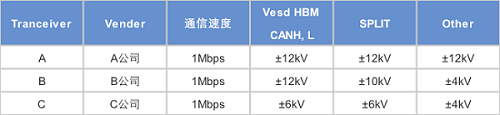 表1 ESD Durabitily of CAN Tranceiver for each IC