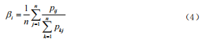 一級(jí)指標(biāo)權(quán)重記為B =(β1,β2,…,βn),采用層次分析法確定各指標(biāo)權(quán)重,由專家對(duì)一級(jí)指標(biāo)分別兩兩打分比較指標(biāo)的重要程度,并根據(jù)指標(biāo)間的相對(duì)重要程度構(gòu)建判斷矩陣。