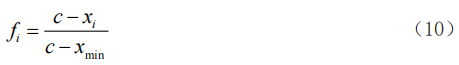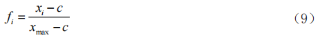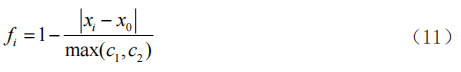 中間型指標(biāo)要求指標(biāo)處于中間值x0的鄰域[x0-c1, x0+c2]內(nèi),且越接近x0越好,其指標(biāo)度量按下式計(jì)算: