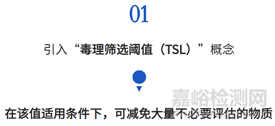 毒理篩選閾值(TSL)用于判斷已存在或可提取的鑒定化合物的總量是否會(huì)引起遺傳毒性、致癌性、全身毒性(如急性、亞急性、亞慢性、慢性)或生殖/發(fā)育毒性。