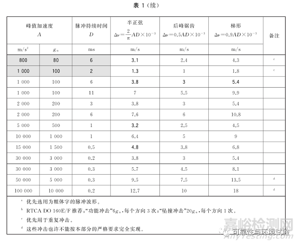 注:最常用的是半正弦形脈沖,梯形脈沖基本上不用于元器件型樣品。