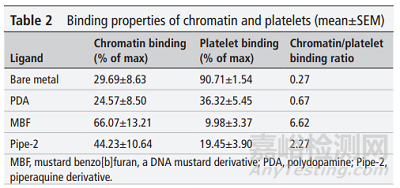 圖6 不同涂層與染色質(zhì)和血小板結(jié)合的特性