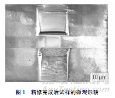 選取離子束電壓和電流分別為30kV,9.3nA的低束流,分別在Pt層上、下兩側(cè)加工深坑,深坑在長度、寬度、厚度方向上的加工尺寸均為16μm。粗加工完成后,將離子束切換至更低束流(30kV,2.5nA),依次在試樣臺傾轉(zhuǎn)角為50°和54°的情況下對Pt層上邊緣和下邊緣進行精修,精修完成后試樣的微觀形貌如圖1所示。