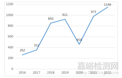 圖3 2016至2022年度第二類(lèi)醫(yī)療器械注冊(cè)數(shù)據(jù)圖