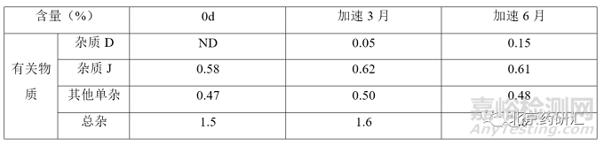 各國藥典標準中單雜最嚴限度為不得過2.5%,雜質(zhì)D和雜質(zhì)J限度均為不得過5%,總雜最嚴為不得過7.0%;該品種加速穩(wěn)定性期間數(shù)據(jù)如下:注:本品最大日服用劑量為阿莫西林鈉3g。