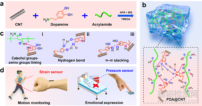 圖1. PDA@CNT/PAM水凝膠的合成路線圖以應(yīng)用展望