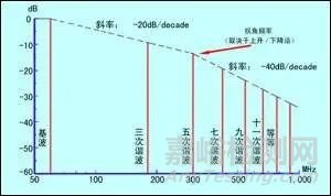 圖1 上升/下降時間為1ns的理想60MHz方波的頻譜