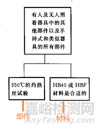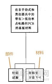 如果部件或者材料不能滿足上述要求,則周圍的部件(上方50mm高,20mm直徑)需要經(jīng)受針焰測試,或者材料滿足V-1等級以上的要求。