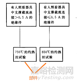 30.2.3.2 支撐載流的絕緣部件及周圍3mm范圍內(nèi)的材料,載流>0.2A時,部件需要滿足GB/T 5169.11(GWEPT) 750℃,起燃時間≤2s的要求;材料需要滿足GB/T 5169.13(GWIT)775℃的要求;載流≤0.2A時,部件需要滿足GB/T 5169.11(GWEPT) 650℃,起燃時間≤2s的要求;材料需要滿足GB/T 5169.13(GWIT)675℃的要求。