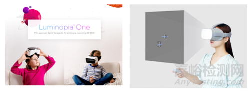 2) 視覺數(shù)字療法:2022年10月,美國食品和藥物管理局(FDA)授予Luminopia One作為改善弱視(懶惰眼)處方療法上市的批準?;颊咴谔摂M現(xiàn)實(VR)設備中觀看經過治療修改的電視節(jié)目和電影以改善視力。Nunap Vision通過使用虛擬現(xiàn)實設備來提供感知訓練,以幫助治療由腦損傷(例如中風)引起的視野缺陷,臨床療效已在概念驗證研究中得到證實。