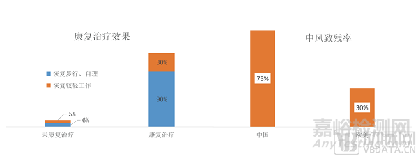 另一方面,《腦卒中康復治療的護理配合》顯示,康復治療可以使90%的腦卒中患者恢復步行和自理生活,使30%的患者恢復較輕的工作;若不進行康復治療,僅有6%恢復步行和自理生活,5%恢復較輕工作。