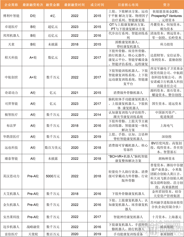近年康復機器人及相關產(chǎn)品的企業(yè)融資盤點 圖片來源:公開資料整理,蛋殼研究院制