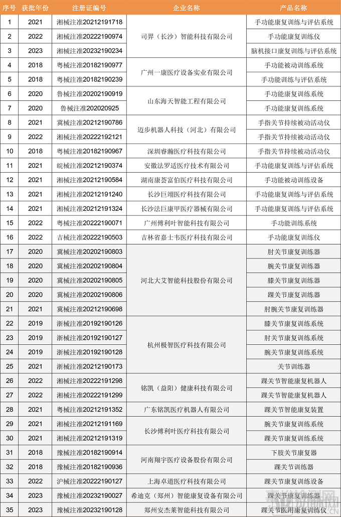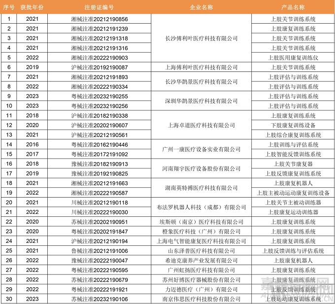 上肢康復機器人與相關產(chǎn)品獲批盤點 圖片來源:NMPA,蛋殼研究院制