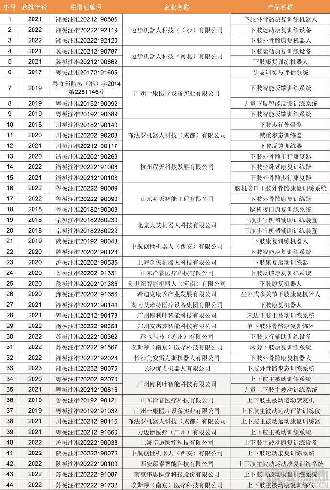 下肢、上下肢康復機器人與相關產(chǎn)品獲批盤點 圖片來源:NMPA,蛋殼研究院制