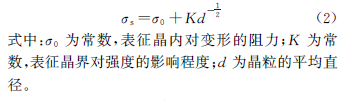 細(xì)晶強化是指在金屬中引入石墨烯,誘導(dǎo)晶粒細(xì)化從而提升復(fù)合材料強度。不同制備工藝對于基體晶粒細(xì)化程度的影響不同,如粉末冶金法、電化學(xué)沉積法均能實現(xiàn)石墨烯在晶界處釘扎從而阻礙晶粒長大。所制備的復(fù)合材料的屈服強度與晶粒尺寸之間滿足Hall-Petch關(guān)系: