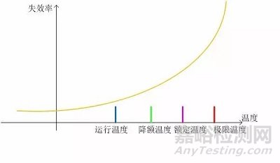 器件極限溫度承受能力是高壓線,超過后失效率劇增,使用中不允許超過。在極限溫度以內(nèi),器件失效率與溫度仍然強(qiáng)相關(guān),失效率隨著溫度升高而增加。