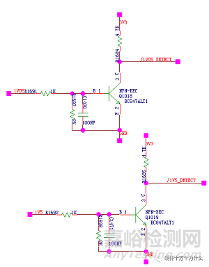 在常溫下用一塊沒有去掉分壓電阻的單板正常運(yùn)行,用示波器測(cè)試/1V05_detect管腳,/1V05_detect信號(hào)為低電平,把示波器設(shè)置為上升沿觸發(fā)模式,然后用液氮開始對(duì)著三極管噴,只有幾秒的時(shí)間,/1V05_detect信號(hào)由低變?yōu)楦唠娖搅耍?yàn)證了三極管在低溫時(shí),參數(shù)發(fā)生漂移,Vbe導(dǎo)通門檻變高。