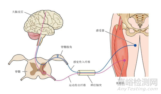人體的運(yùn)動(dòng)離不開(kāi)完整的神經(jīng)系統(tǒng)和骨骼肌,神經(jīng)-肌肉系統(tǒng)最基本的單位是運(yùn)動(dòng)單元(Motor Unit),它包括:運(yùn)動(dòng)神經(jīng)元、樹(shù)突、軸突、以及支配的肌纖維。運(yùn)動(dòng)神經(jīng)元位于脊髓腹角(下角),它接受來(lái)自上層的腦信號(hào),并通過(guò)軸突延傳至外周神經(jīng),最終投射至肌纖維。一個(gè)運(yùn)動(dòng)神經(jīng)元的軸突支配著若干個(gè)肌纖維。運(yùn)動(dòng)神經(jīng)元興奮的時(shí)候會(huì)使與它相連的肌纖維產(chǎn)生收縮。