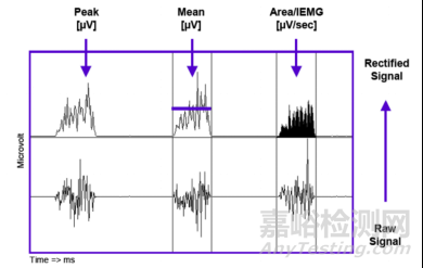 時(shí)域分析是將肌電信號(hào)看作時(shí)間的函數(shù),以時(shí)間為自變量進(jìn)行某些統(tǒng)計(jì)分析,不涉及任何非時(shí)間的自變量。時(shí)域分析可以為您提供在時(shí)間維度上評(píng)價(jià)肌電曲線的變化特征的指標(biāo),包括: