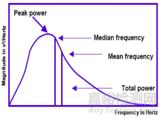 頻域分析是對(duì)生物實(shí)時(shí)信號(hào)的頻率特性分析,也稱功率譜分析。頻域信號(hào)是將時(shí)域信號(hào)通過(guò)快速傅里葉轉(zhuǎn)換(FFT)得出,可反映肌電信號(hào)在不同頻率范圍內(nèi)的強(qiáng)度,得到肌電信號(hào)在有關(guān)頻率特征的信息。頻域分析指標(biāo)包括: