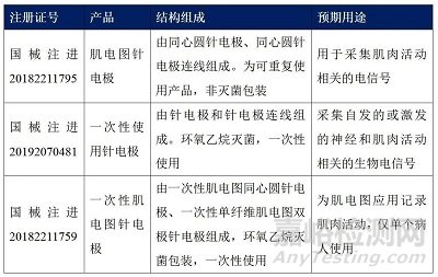 肌電產(chǎn)品既有有創(chuàng)針電極,也有無(wú)創(chuàng)的表面貼附電極,其中針電極產(chǎn)品在國(guó)內(nèi)共有三張注冊(cè)證,相關(guān)信息如下: