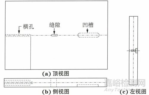 附錄XI提出了獨(dú)特的校準(zhǔn)試塊設(shè)計(jì),F(xiàn)MC校準(zhǔn)試塊反射體布局如圖3所示,與相控陣超聲的掃查試塊不同,該試塊是強(qiáng)制使用的。試塊中需布置3種反射體,即兩個側(cè)鉆孔(橫孔)、一個通槽(縫隙)和一個表面槽(凹槽)。側(cè)鉆孔用于分辨率驗(yàn)證及檢測靈敏度設(shè)置,但ASME標(biāo)準(zhǔn)也允許使用其他標(biāo)準(zhǔn)試塊上的側(cè)鉆孔,只需確保所用標(biāo)準(zhǔn)試塊上側(cè)鉆孔深度位于檢測區(qū)域的中間1/3處即可。另外,校準(zhǔn)試塊可以增加額外的反射體,但需確保該反射體不用于替代規(guī)定的反射體,同時(shí)不影響規(guī)定反射體的超聲信號,且需在規(guī)程中描述附加反射體的目的。