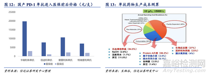 醫(yī)保集采控費(fèi)嚴(yán)格,上游生產(chǎn)國(guó)產(chǎn)替代意愿持續(xù)增強(qiáng)。目前我國(guó)醫(yī)療支付體系壓力較大,帶量采購(gòu)藥價(jià)降幅明顯,且醫(yī)保談判對(duì)于創(chuàng)新藥同樣具有較高的降價(jià)要求,2021 年醫(yī)保談判價(jià)格平均降幅達(dá) 62%,如恒瑞醫(yī)藥卡瑞利珠單抗 2021 年進(jìn)入醫(yī)保后單支降幅高達(dá) 85%,降本增效以增強(qiáng)國(guó)內(nèi)市場(chǎng)綜合競(jìng)爭(zhēng)力成為國(guó)內(nèi)下游藥企核心選擇。據(jù)生物谷測(cè)算, 單抗生產(chǎn)成本中,設(shè)備占比約為 48%,耗材(如濾膜、純化填料等)占 30%,原材料(培養(yǎng)基等)占 15%,藥企降本增速訴求愈加強(qiáng)烈。隨著國(guó)產(chǎn)設(shè)備、耗材質(zhì)量不斷提升,逐漸進(jìn)入國(guó)內(nèi)藥企供應(yīng)鏈,藥物生產(chǎn)成本有望進(jìn)一步下降,上游供應(yīng)商未來(lái)業(yè)績(jī)確定性較高, 推動(dòng)生命科學(xué)上游國(guó)產(chǎn)滲透率不斷提升。